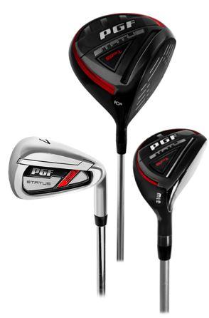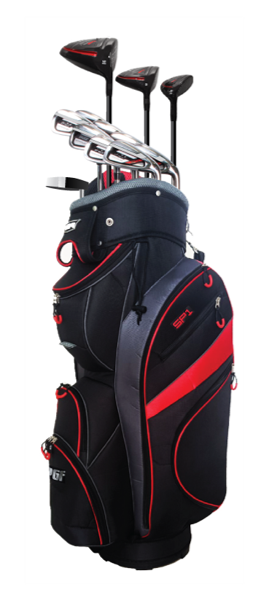 PGF Status SP1 clubs are built to take your game to the next level. They feature super-forgiving designs to improve your consistency and build your confidence. SP1 clubs have been designed with low and deep CG’s to launch the ball higher for extra forgiveness and longer carry. The SP1 packages include a Titanium Driver, Stainless Steel Fairway and Hybrid all in Black PVD finish. The oversize, stainless SP1 irons feature an undercut cavity for extra forgiveness. The stainless steel Mallet SP1 Putter features a Double-Bend shaft and oversize pistol grip. The SP1 set is packaged with a premium 9-pocket cart bag with 14-way top, external putter tube, cooler/ball pocket and premium SP1 headcovers