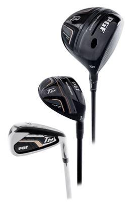 The PGF TP Gold package has been engineered with premium components to take your game to the next level. Featuring an Adjustable 460cc oversized driver, and high launching fairway and hybrids, you will soon be hitting the ball longer, straighter, and more consistently. The TP irons feature a deep, undercut cavity that offers maximum forgiveness and higher launching, more accurate approach shots. And for 2019, we’ve upgraded the Sand Wedge for superior greenside performance. Also included is a progressive mallet putter with weighted alignment wings and premium 9.5" Cart bag with 14-way top, built-in putter pit and cooler pocket.