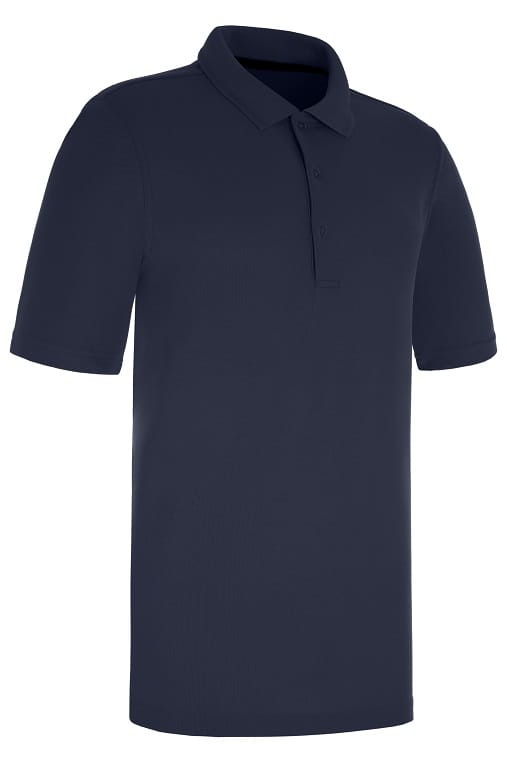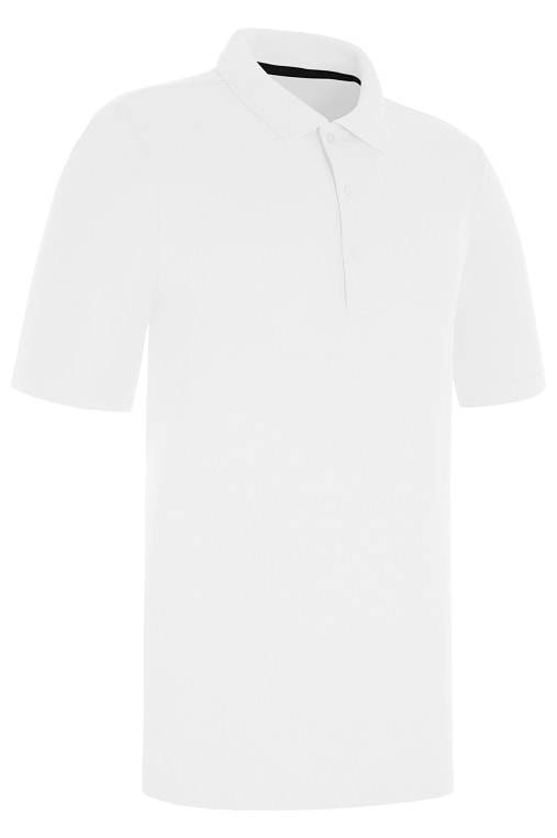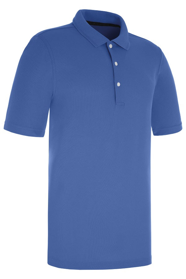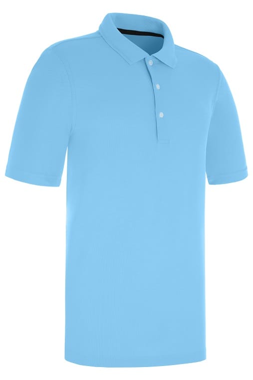 A solid block colour polo shirt made with technical stretch fabric for UV protection and moisture wicking.