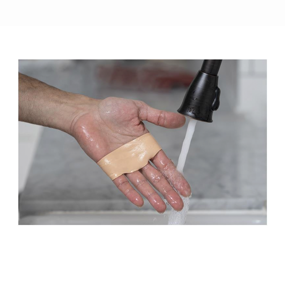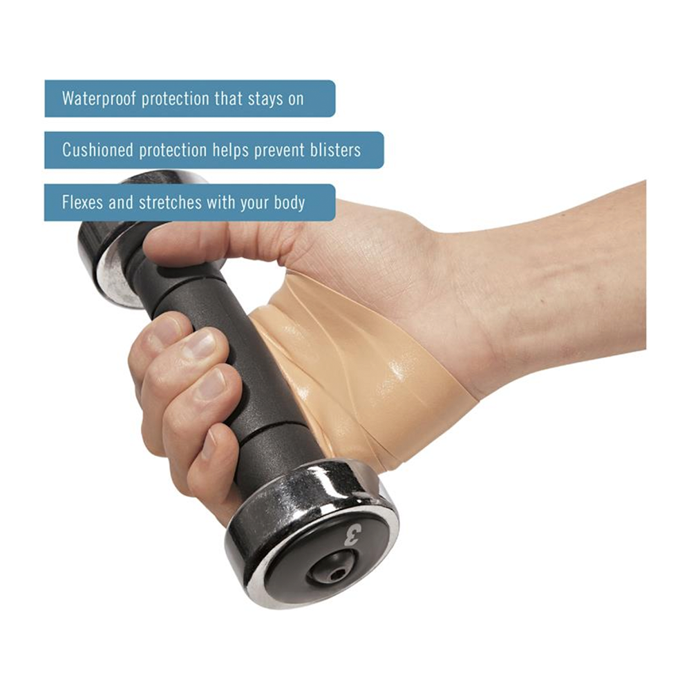 Water‑resistant (sticks to wet, sweaty skin) usage.