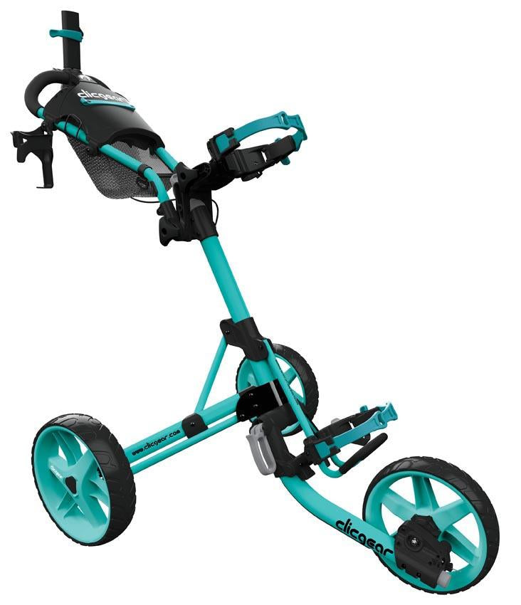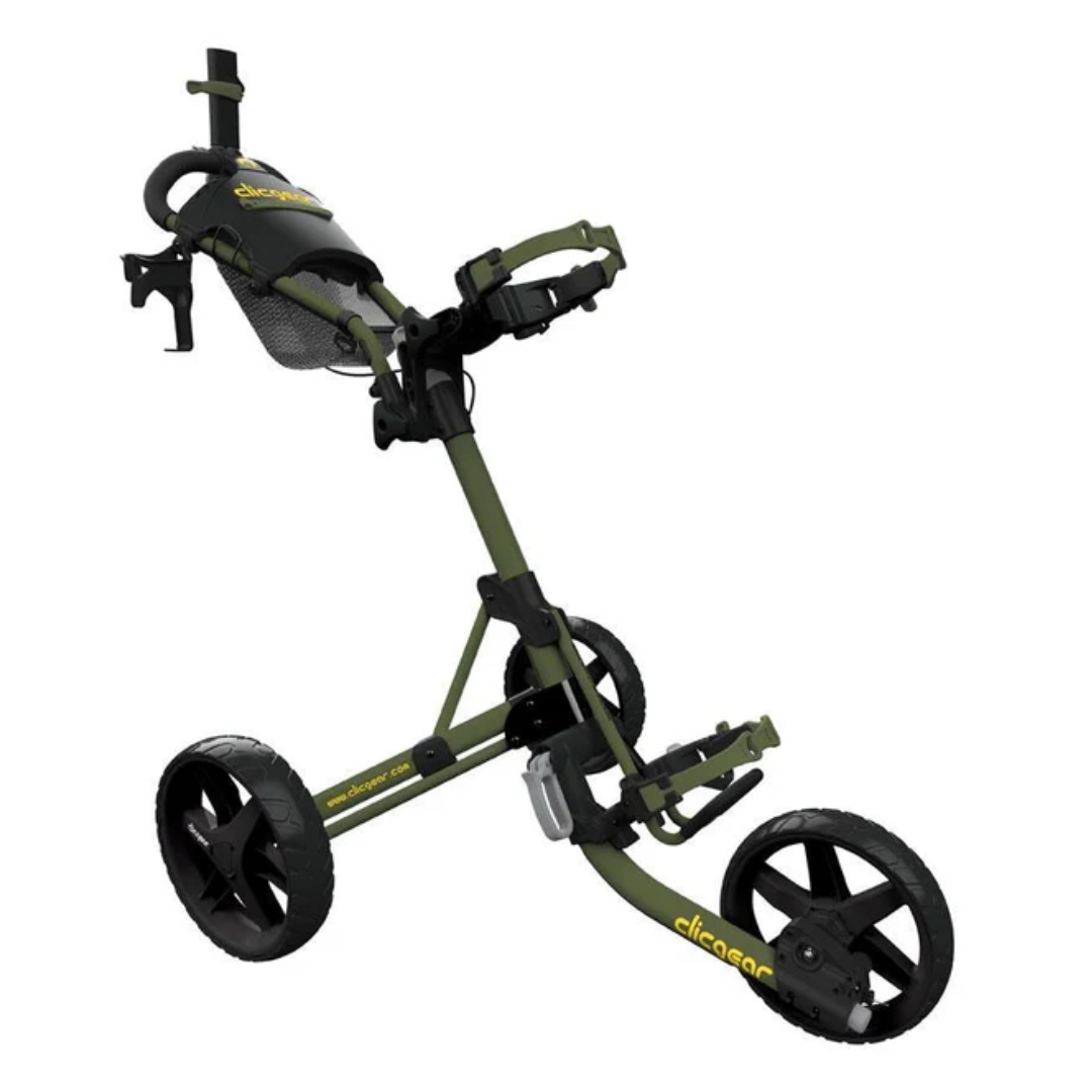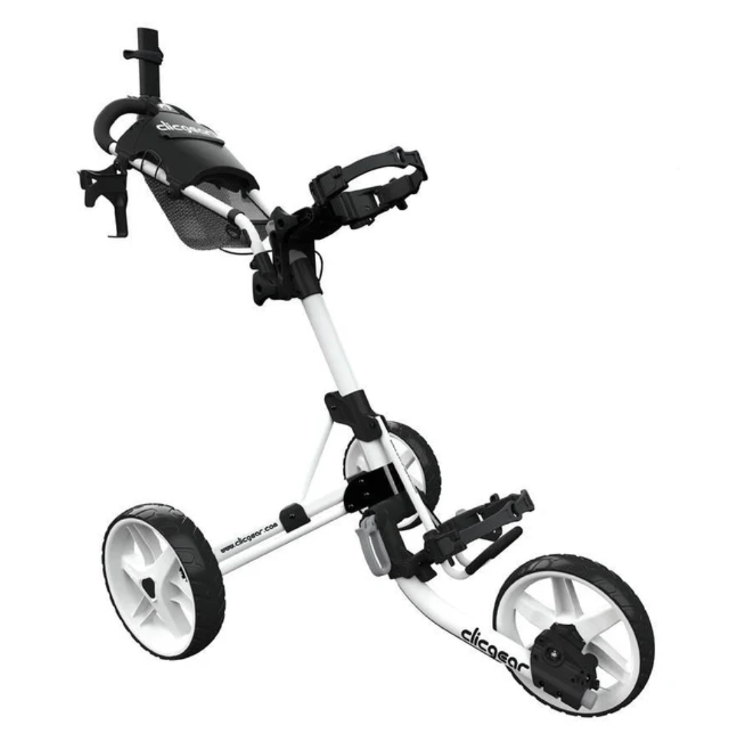 Worth the wait. The new Clicgear Model 4 is the long-awaited update of Clicgear’s dominant three wheel golf pushcart design. Clicgear have continued to push the design envelope with features like the new adjustable upper saddle, revised lower saddle, silicone straps and much more. Model 4 is comes in a huge range of colours and is complimented by a complete selection of accessories. And for a unique, personalised look, the Model 4 can be colour customised with Trim and Wheel Kits (sold separately).