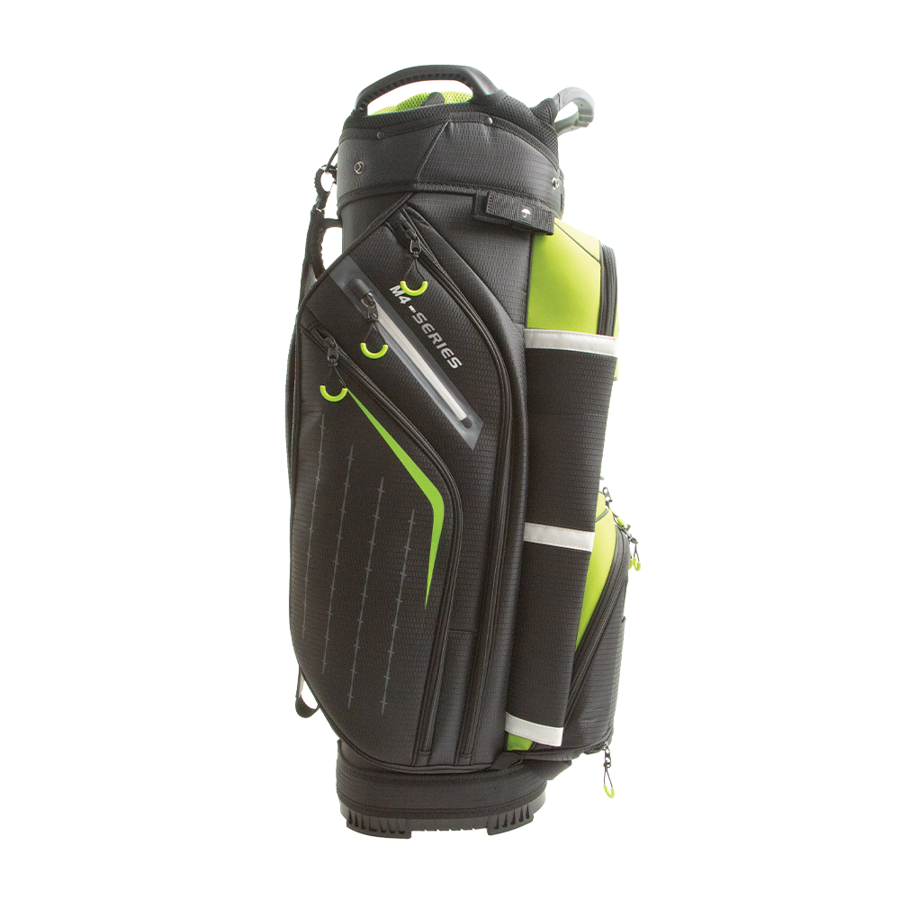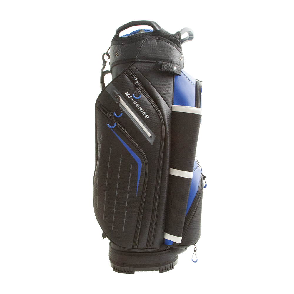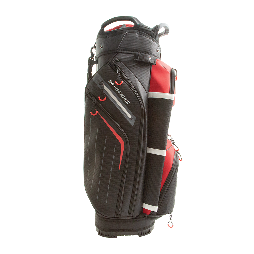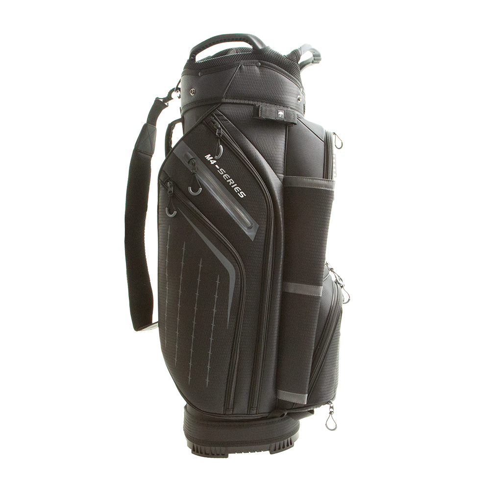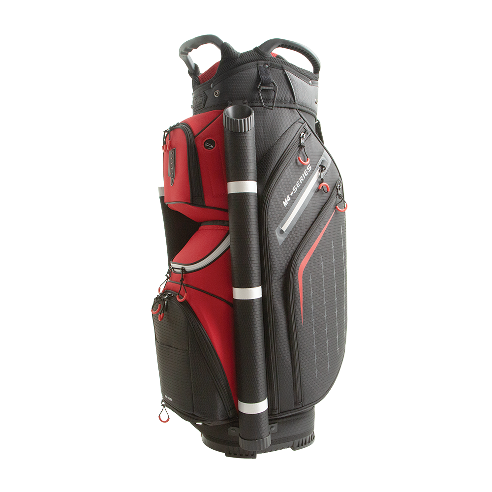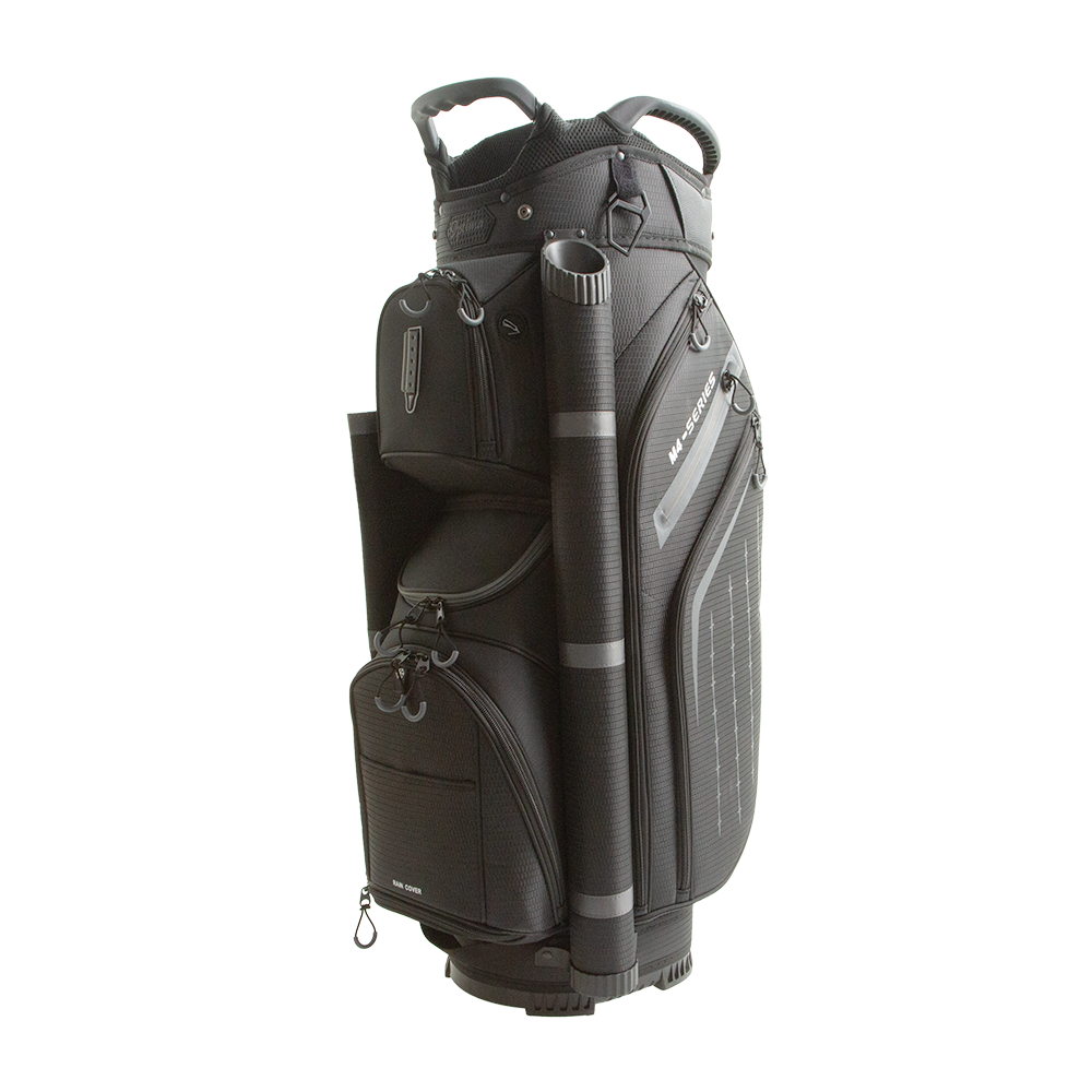 The Optima Champion bag features premium fabrics and lightweight stay construction. The Champion boasts the features that make it one of the most popular cart bags such as 14-way top with full length dividers, external putter pit, umbrella sheath and full-size rain coverall. With 9 high-volume pockets, there is vast space for all your equipment and accessories like the cooler pocket with drainage eyelets, dry pocket and the waterproof valuables pocket. It also features dual easy-lift grab handles for easy manoeuvrability.