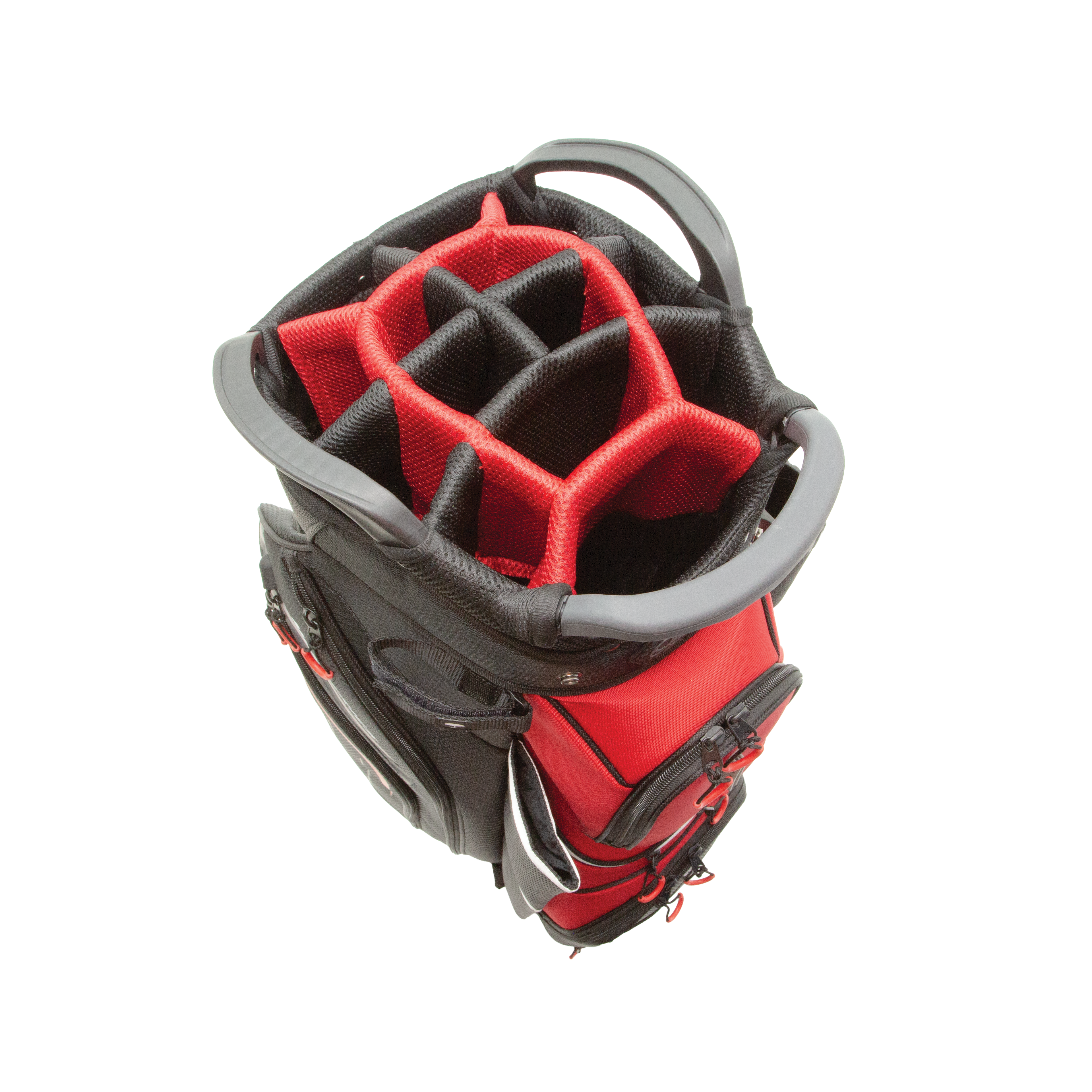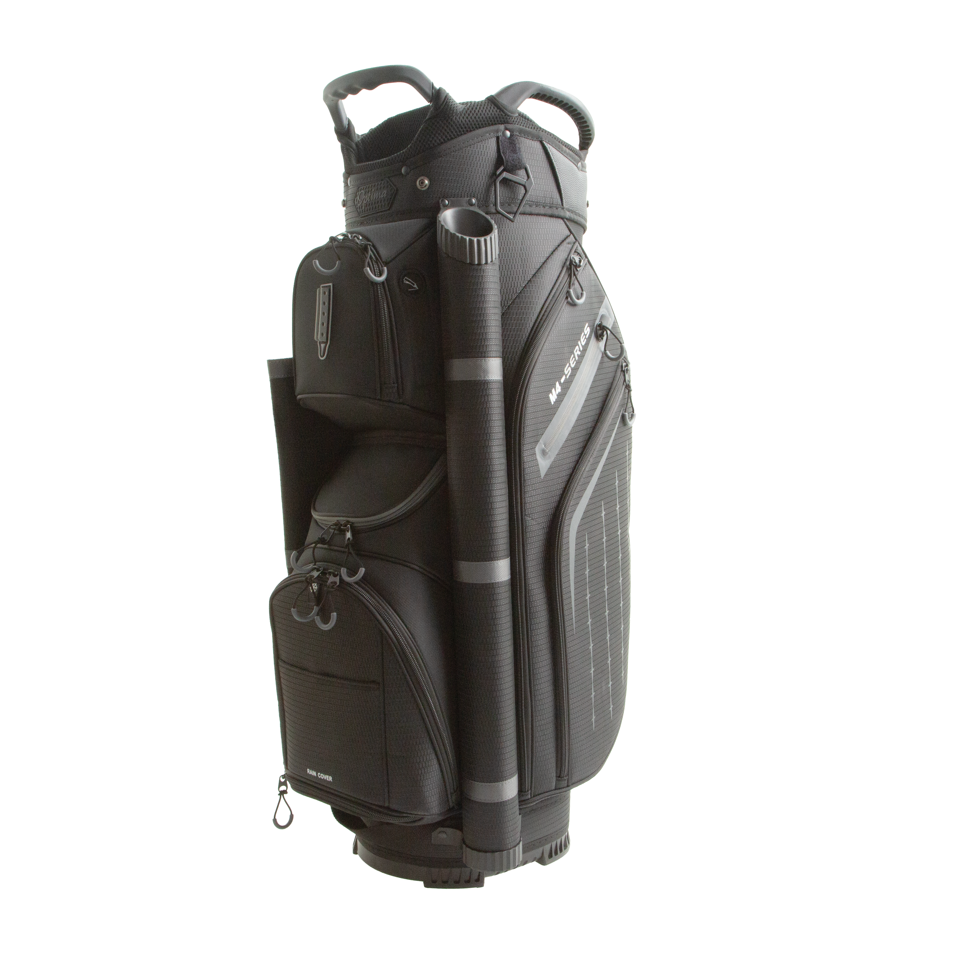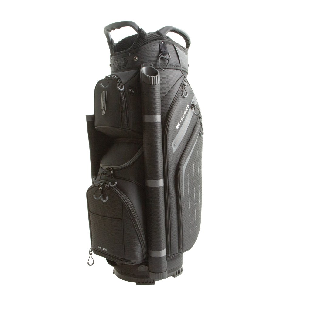 The Optima Champion bag features premium fabrics and lightweight stay construction. The Champion boasts the features that make it one of the most popular cart bags such as 14-way top with full length dividers, external putter pit, umbrella sheath and full-size rain coverall. With 9 high-volume pockets, there is vast space for all your equipment and accessories like the cooler pocket with drainage eyelets, dry pocket and the waterproof valuables pocket. It also features dual easy-lift grab handles for easy manoeuvrability