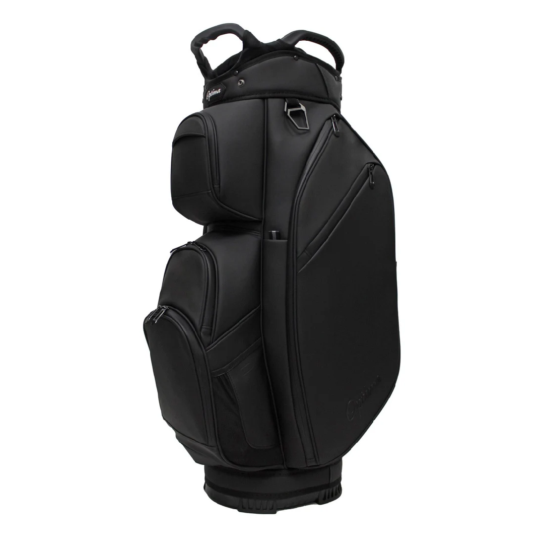 Optima PU Cart Bag – Style, Durability & Functionality. The Optima PU Cart Bag blends sleek design with exceptional durability. Crafted from premium PU material, it offers a stylish, wear-resistant finish for long-lasting performance. The 14-way top with a front grab handle ensures easy club organization and access, while multiple strategically placed pockets provide ample storage for all your gear. Featuring subtle Optima branding, this bag delivers a refined, professional look. Built for convenience and resilience, it’s the perfect choice for golfers who value elegance, functionality, and premium quality on the course.
