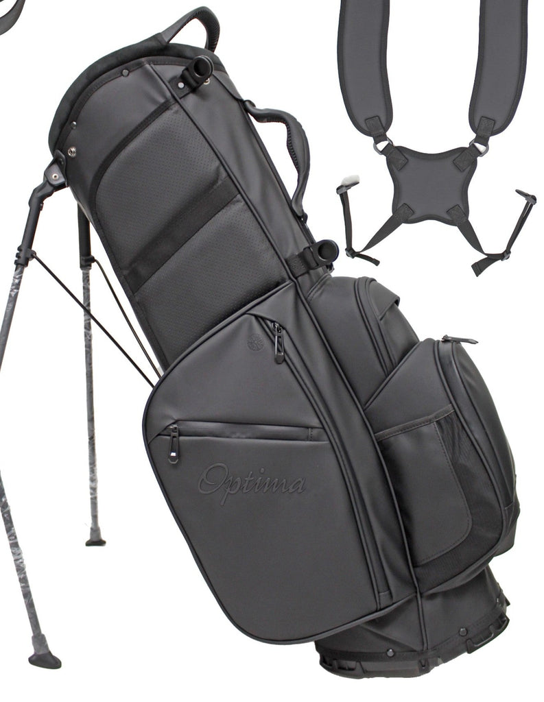Optima PU Stand Bag – Style, Durability & Functionality. The Optima PU Stand Bag blends sleek design with exceptional durability. Crafted from premium PU material, it offers a stylish, wear-resistant finish for long-lasting performance. Easy carry harness with front grab handle ensures an easy walk around the course, while multiple strategically placed pockets provide ample storage for all your gear. Featuring subtle Optima branding, this bag delivers a refined, professional look. Built for convenience and resilience, it’s the perfect choice for golfers who value elegance, functionality, and premium quality on the course