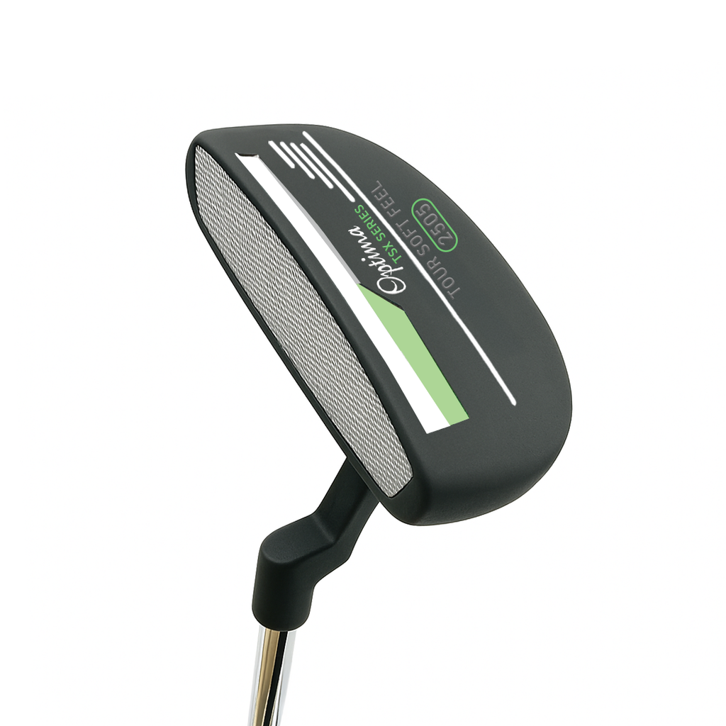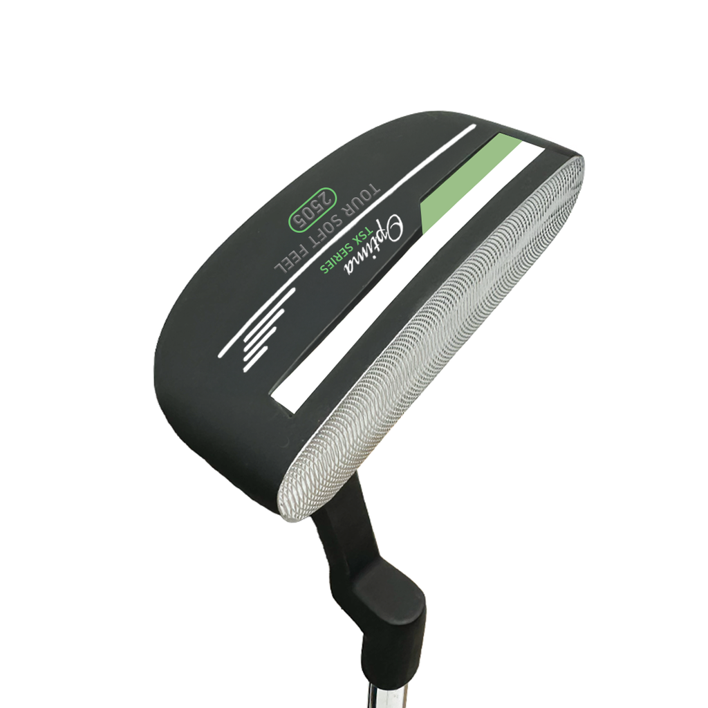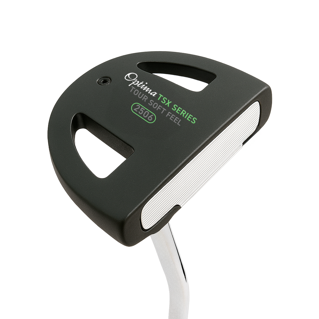 The Optima TSX putters present a diverse selection of styles to accommodate golfers of all skill levels, boasting improved alignment, a sleek non-glare gun metal face, and enhanced feel thanks to a polymer insert. These putters are designed to deliver exceptional performance, offering players a choice of eight head styles that range from traditional to modern, including Heel-Toe Blades, Semi-Mallets, and Oversize designs. Each putter in the Optima TSX range is meticulously crafted with superior weighting and balance, soft polymer face inserts* for a pure feel upon impact, and a fresh Mid Slim 2.0 size Non-Taper PU grip to ensure stroke consistency