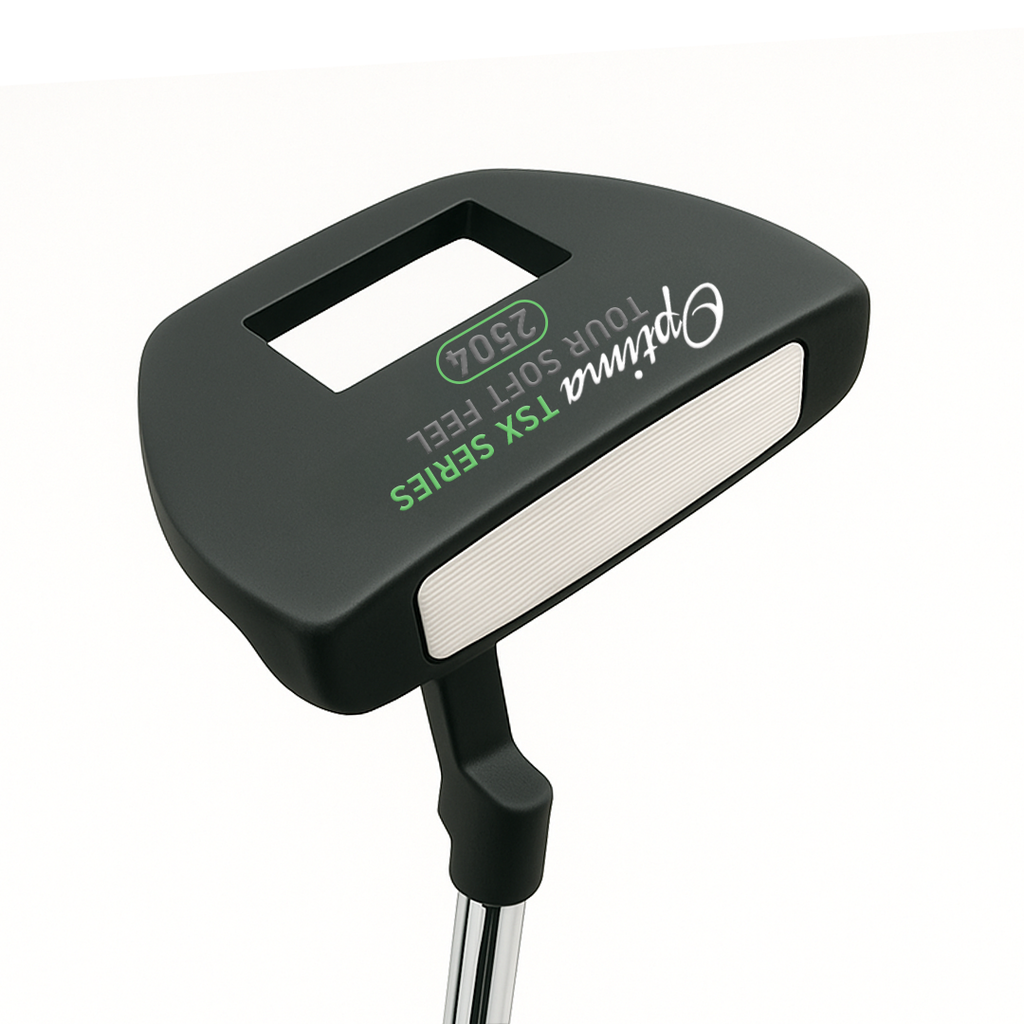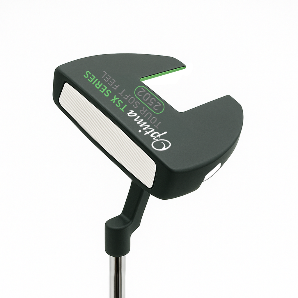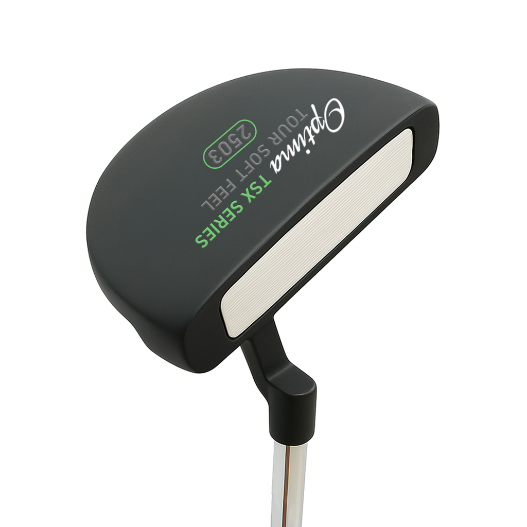 The Optima TSX putters present a diverse selection of styles to accommodate golfers of all skill levels, boasting improved alignment, a sleek non-glare gun metal face, and enhanced feel thanks to a polymer insert. These putters are designed to deliver exceptional performance, offering players a choice of eight head styles that range from traditional to modern, including Heel-Toe Blades, Semi-Mallets, and Oversize designs. Each putter in the Optima TSX range is meticulously crafted with superior weighting and balance, soft polymer face inserts* for a pure feel upon impact, and a fresh Mid Slim 2.0 size Non-Taper PU grip to ensure stroke consistency